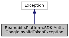 Inheritance diagram for Beamable.Platform.SDK.Auth.GoogleInvalidTokenException: